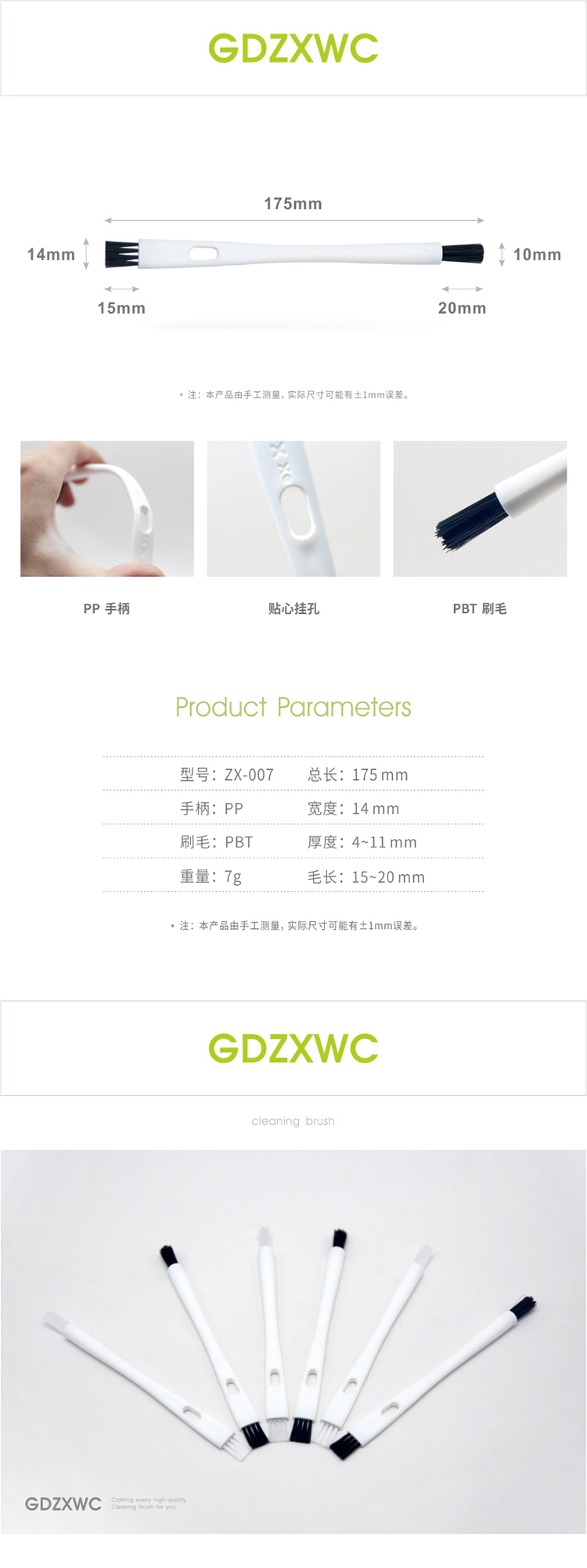 • 型號:ZX-007 白柄白毛/白柄黑毛,這是一款研磨器清潔刷,PP手柄+尼龍刷毛,適用于小家電清潔、家居清潔 ......